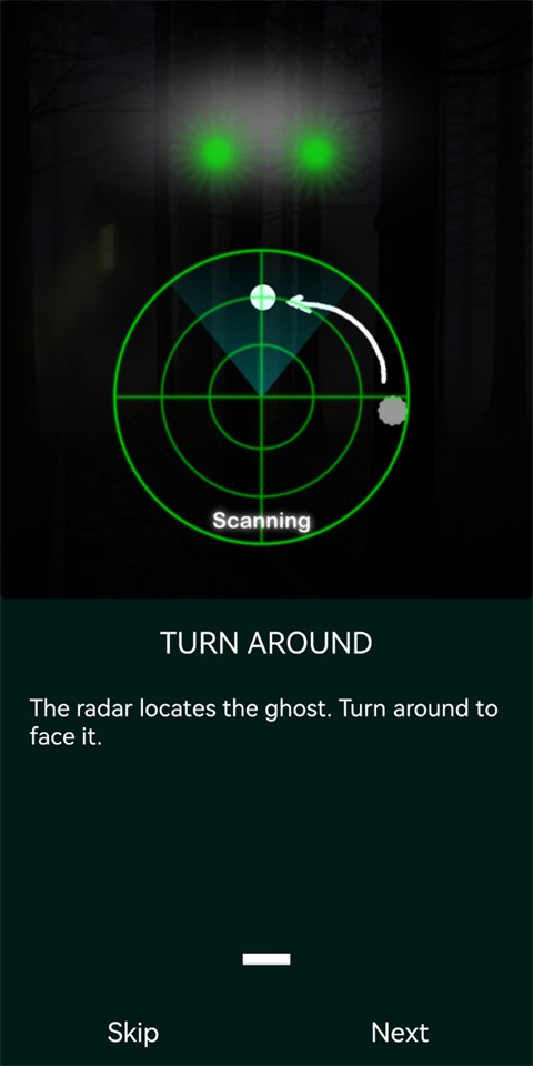 摄像头扫描:软件调用手机摄像头,在界面上模拟出扫描画面,会随机呈现出闪烁的光点、模糊的人形轮廓或光影异动等效果