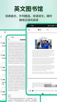 音频朗读与跟读: 提供文章的真人发音朗读,帮助学习语音语调,并通常支持同步跟读、录音对比,检验发音效果。
