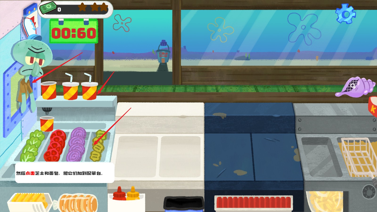 2、为玩家带来全新的烹饪体验,玩家可在游戏中感受海绵宝宝制作蟹黄堡的乐趣。
