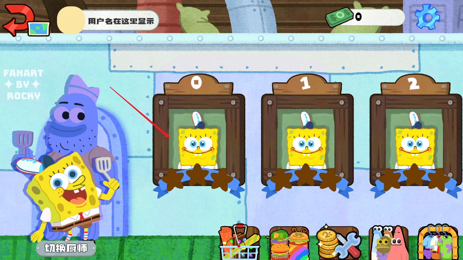 3、游戏将海绵宝宝中的形象都做出了还原,海绵宝宝、章鱼哥、派大星、蟹老板等经典形象在游戏中都可以见到。