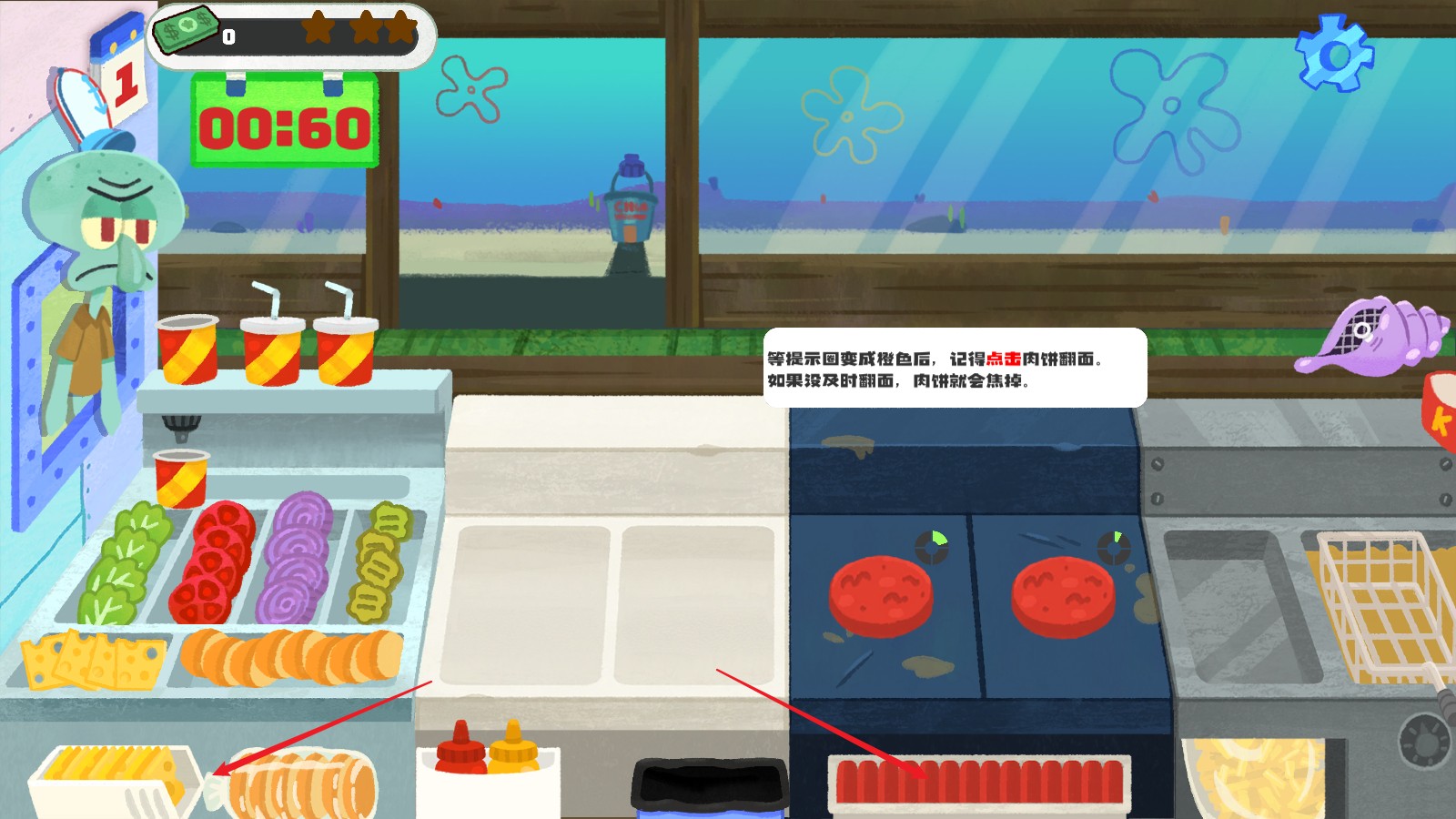 4、作为比基尼海滩最受欢迎的美食,玩家需满足每位顾客的口味,打造美味蟹黄堡,提升餐厅知名度。