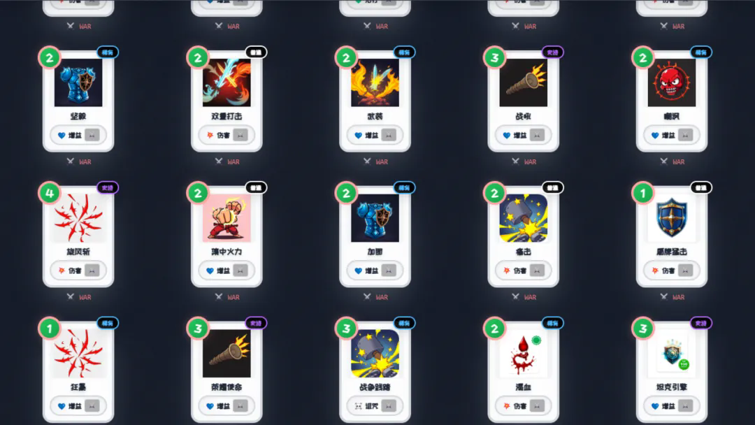 属性提升:通过击败敌人、完成事件获取经验值,提升角色等级以解锁新卡牌槽位、增强基础属性(攻击、防御、生命)。